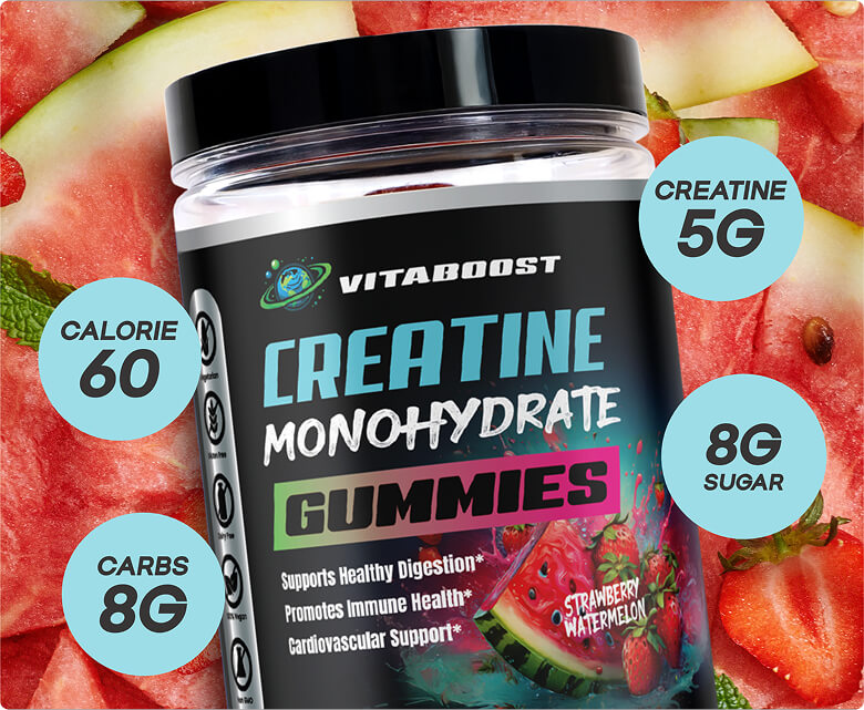 Each serving of VitaBoost Creatine Gummies provides 5 g of pure creatine monohydrate.